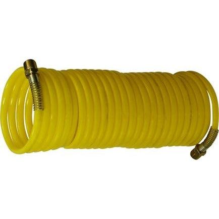 The 25 Feet Nylon Coil Air Hose is a durable, flexible, and lightweight hose designed for compressed air applications. The coiled design allows for compact storage and prevents tangling, making it ideal for workshops, garages, and industrial environments. This hose is compatible with air compressors, pneumatic tools, and blow guns, ensuring efficient air transfer with minimal pressure loss. This coiled nylon air hose offers reliability, space efficiency, and durability, making it a great choice for both professional and DIY users.